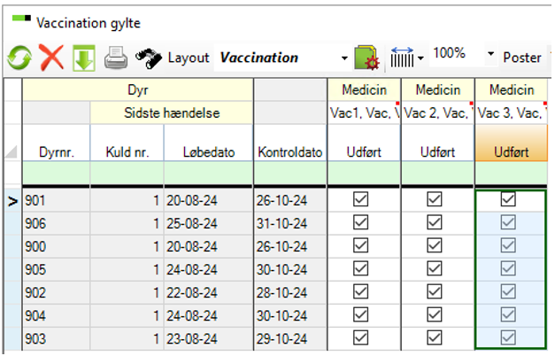 Dette gøres for alle vacciner, og derefter er alle søer på listen registreret med vaccination.