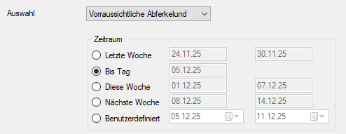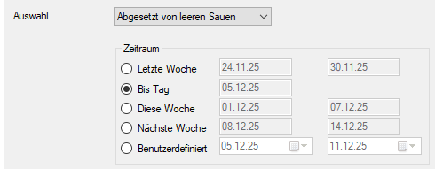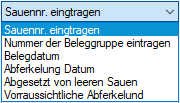 4. Abferkeltermin. Sie sehen dasselbe wie beim Belegdatum und haben die gleichen Optionen.