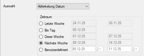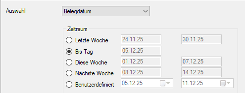 3. Belegdatum. Hier können Sie verschiedene Einstellungen für den Druck auswählen. Benutzerdefiniert – Sie wählen den gewünschten Zeitraum aus.