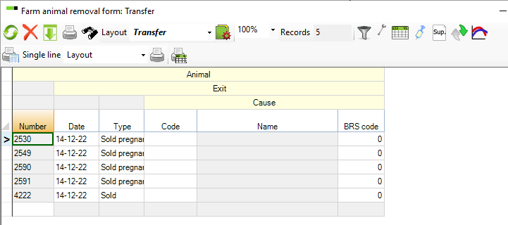 Hinweis: Wenn Sie eine Liste der zu transferierenden Sauen in elektronischer Form haben, können Sie diese Nummern kopieren und in die Spalte „Transfer“, Nummer einfügen.