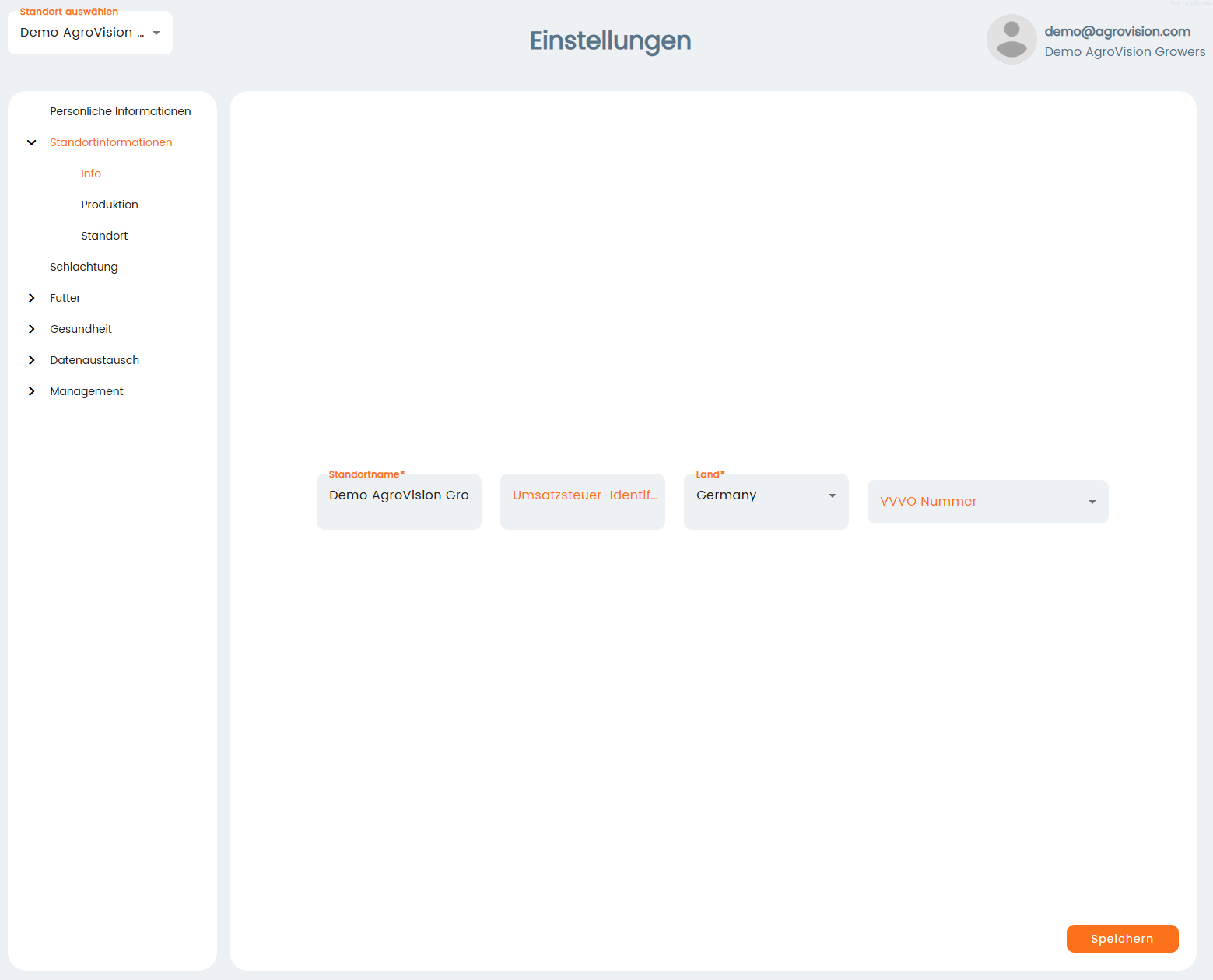 Einer der ersten Schritte, wenn Sie AgroVision Growers zum ersten Mal starten, ist das Einrichten des Programms. Wenn Sie das Programm zum ersten Mal starten, wird das Einstellungsmenü automatisch geöffnet. Sollte dies nicht der Fall sein, können Sie jederzeit das Menü "Einstellungen“ in der Menüauswahlleiste auf der linken Seite Ihres Bildschirms aufrufen.