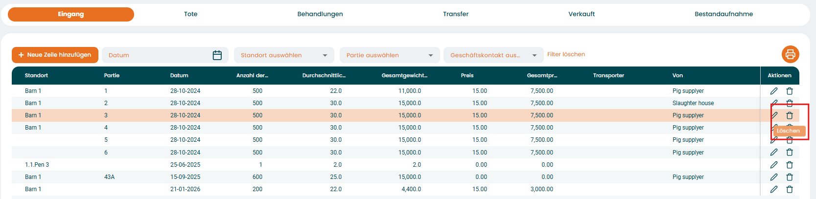 Wählen Sie nun den Eintrag aus, den Sie löschen möchten, und klicken Sie auf das Papierkorb-Symbol rechts am Ende der Zeile.