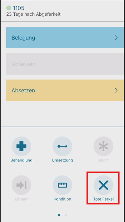 Wählen Sie das Tier aus und klicken Sie im neuen Fenster unten auf dem Bildschirm auf „Tote Ferkel“.