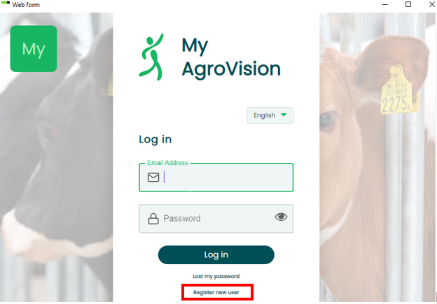 - Click on "Register new user" if this is the first time you log in. Otherwise, you can log in with your MyAgroVision information.