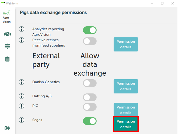 - "Permission details "opens next to SEGES.