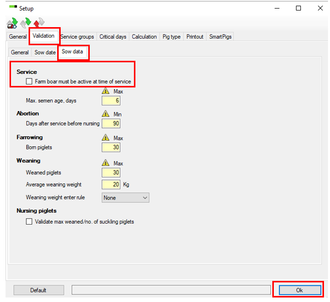 Select the tab “Validation” and then the tab “Sow data” marked above.