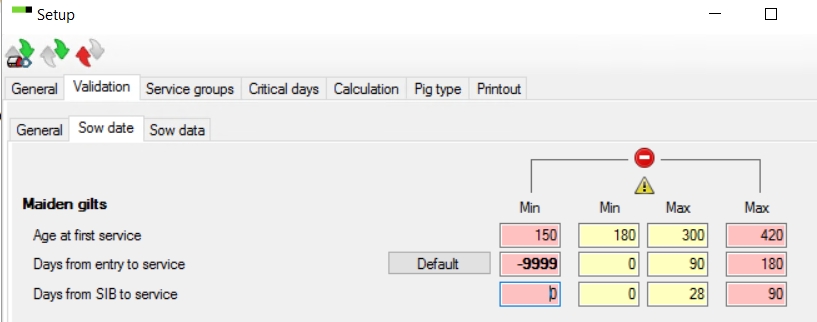 Before importing any sows, you must change the settings. Select " General" - "Setup" - "Validation" - "Sow data":