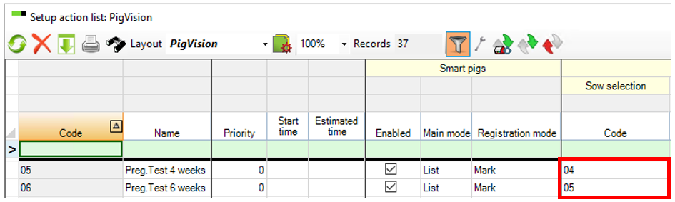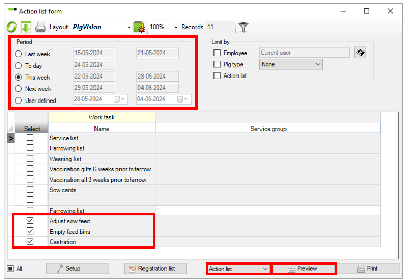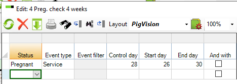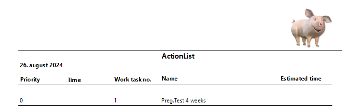 Here the sow selection is set up for 4 weeks pregnancy check. Close the windows and set checkmark in the box at the worklist you want to print.