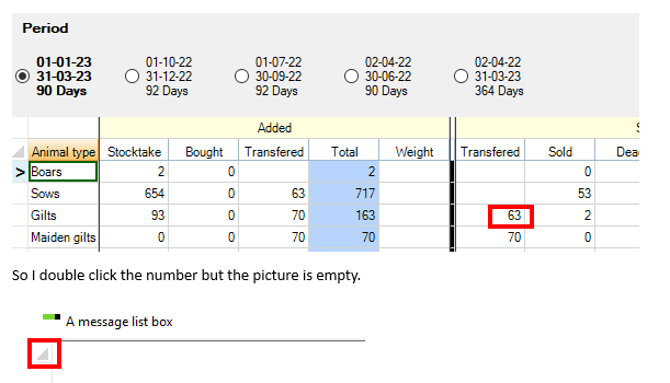 When I would like to see the animal numbers in an analysis, I double click on the number but the picture showing is empty.