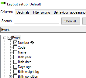 A list appears and you checkmark the information you want to be shown. Here Event and Number