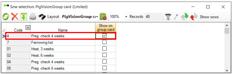 It is possible to add columns to your group card with expected farrowing, heat 3 weeks and pregnancy test etc.