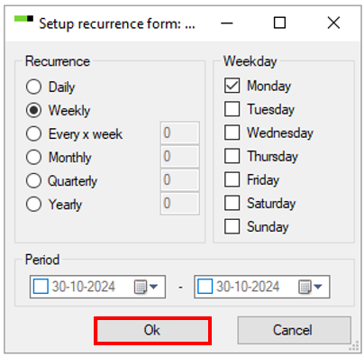 Find the work list you want to add and click on it. Then click on the "Setup recurrence" icon at the top.