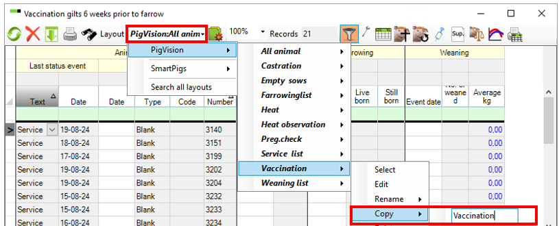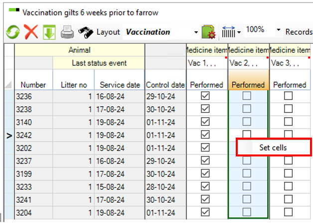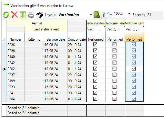 This is done for all vaccines, and then all sows on the list are registered with vaccination.