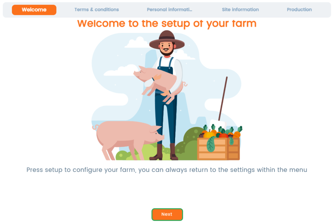 - Choose "Sow management" or "Individual Animals management" as production type. This setup cannot be changed once the site is created. Read more here: Can I change production type? : Customer Service Portal