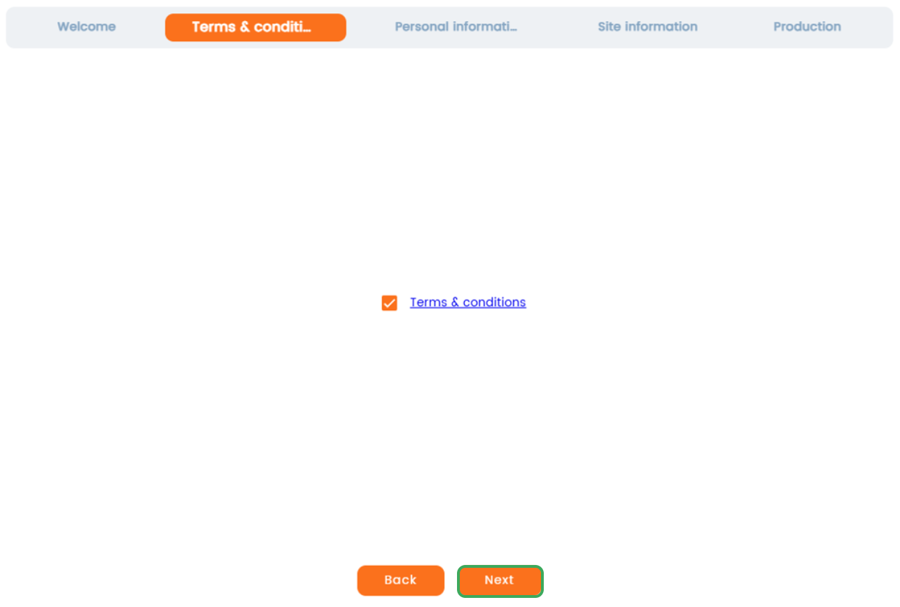 - Terms and conditions are automatically check marked. Click the link to read the terms and conditions.