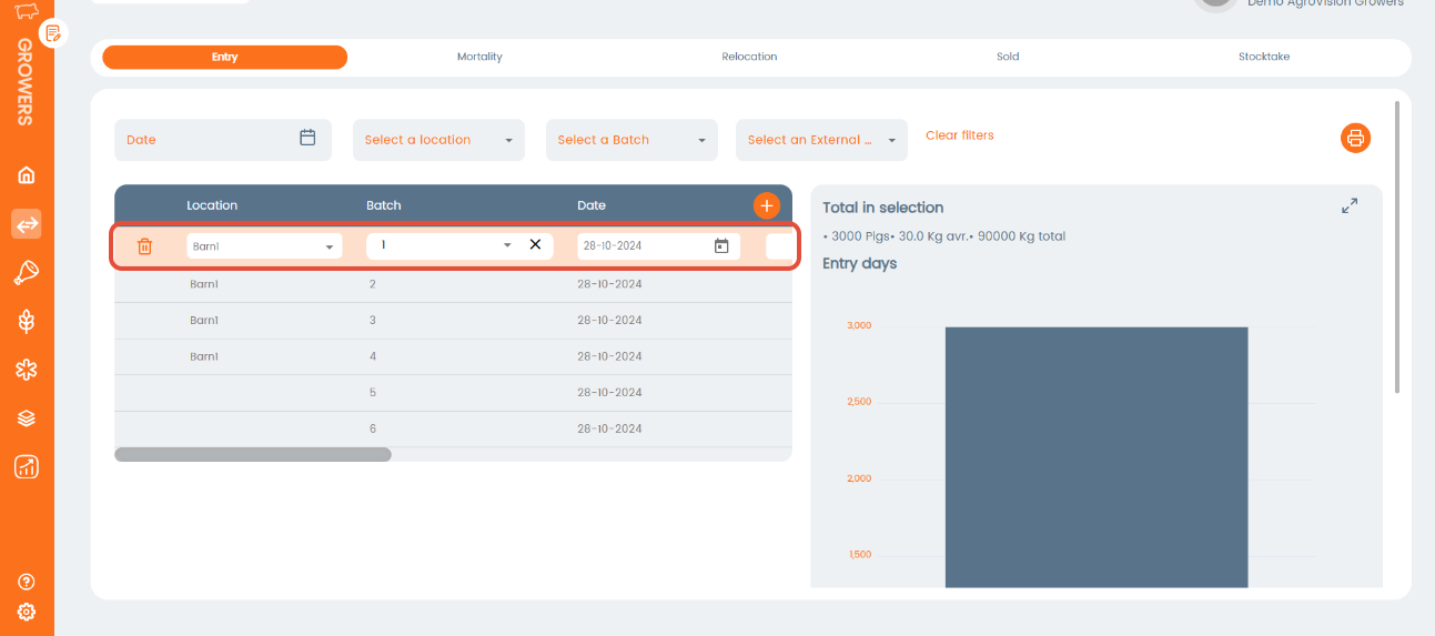 When you want to edit an existing registration you will go to the table where the registration you want to edit is saved. In this example we are editing an entry registration. So we go to "Actions" and select "Entry" to see all the entries. Once we are there we click on the row we want to edit and it will automatically become editable.