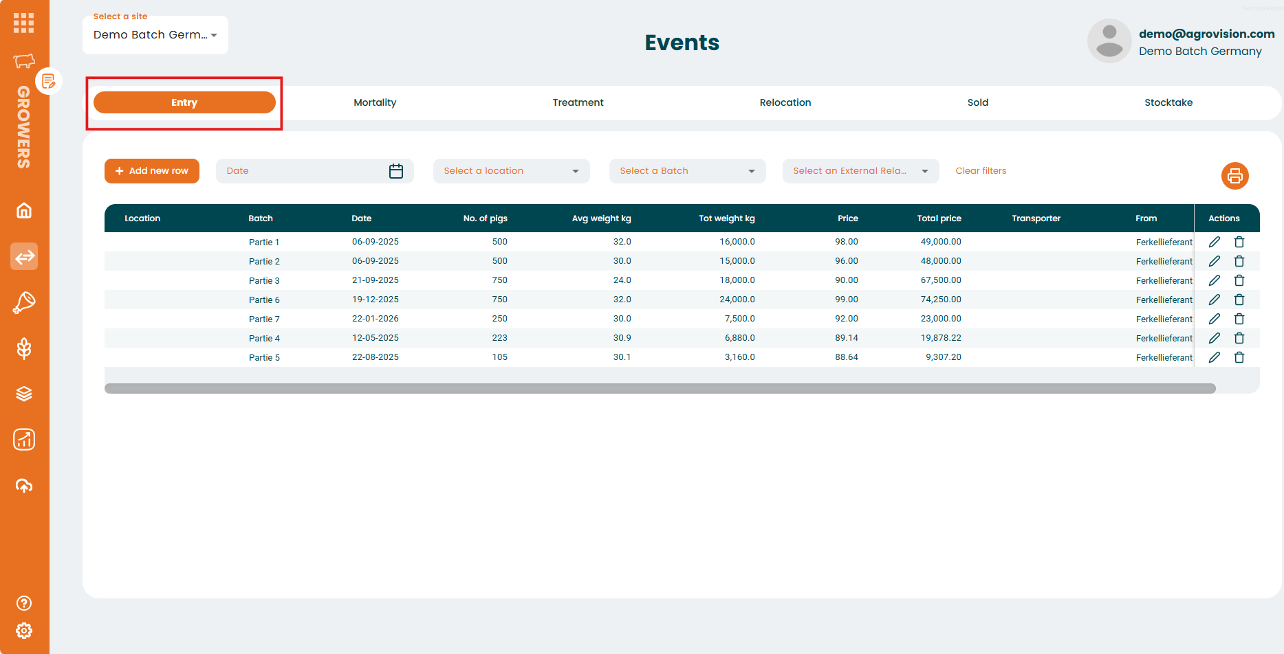 - Entry: to record new animals when they arrive on the farm