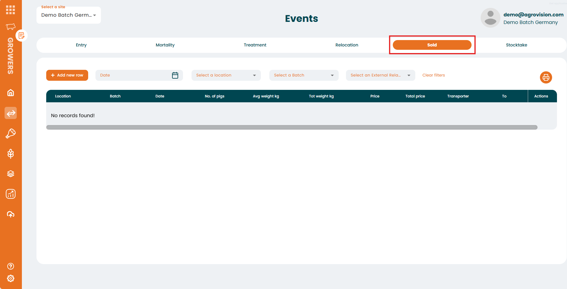 - Sold: to record sold animals to other farms or slaughter houses
