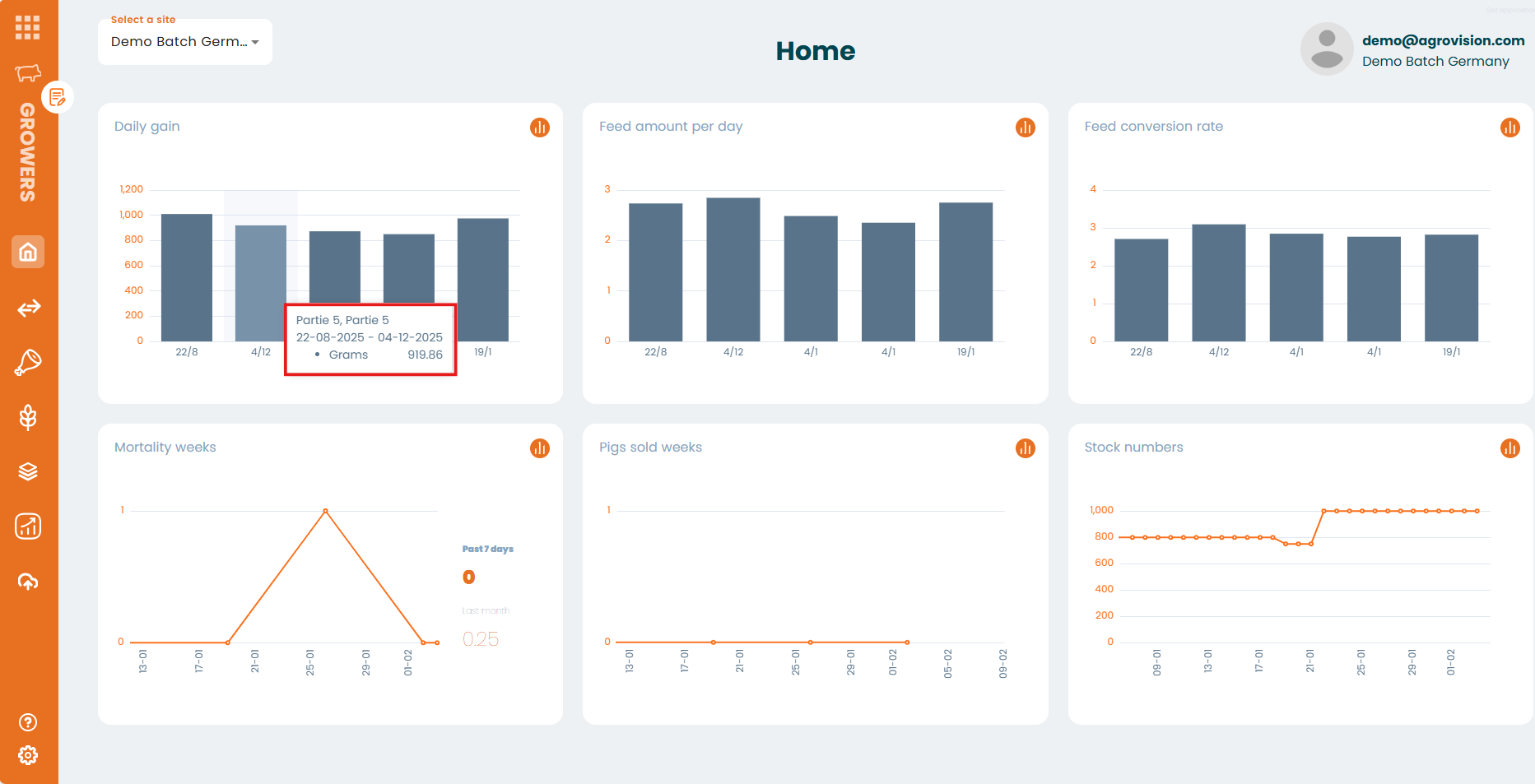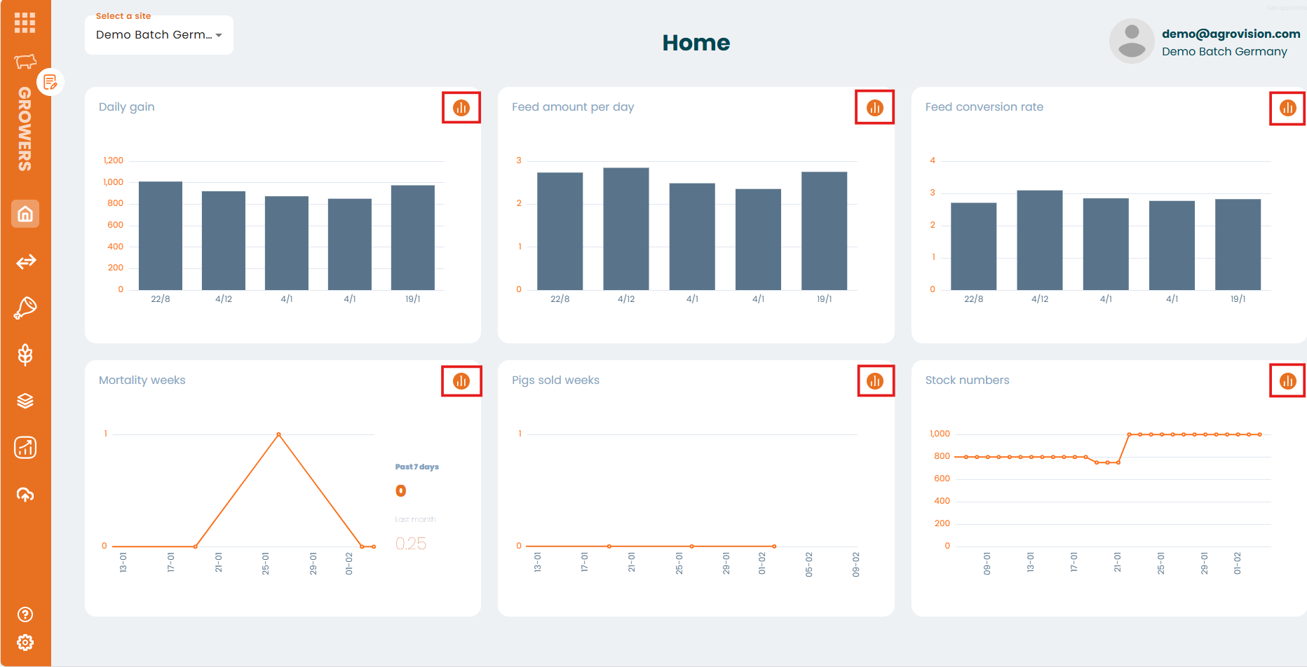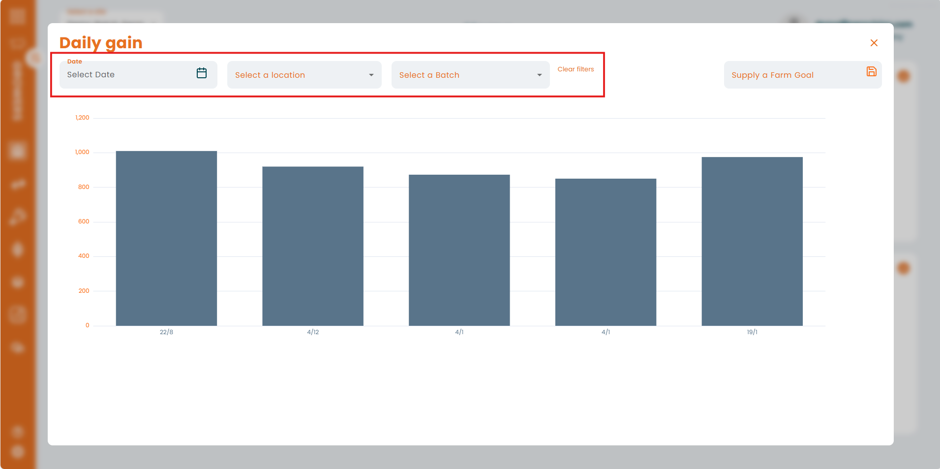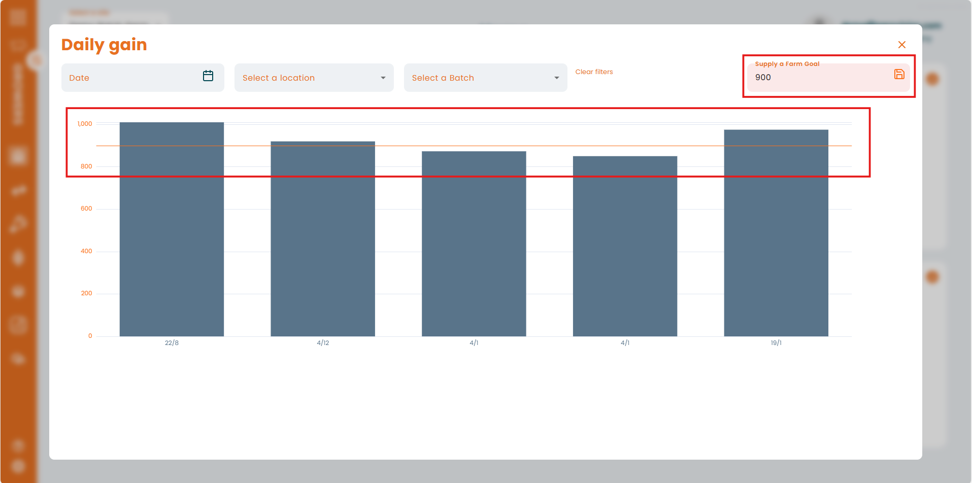 Finally, you can set a farm goal or target. This is an objective that will be shown in your graph so you can easily check if your data is above the goal or not. To change it just click, type your new goal and click in the save button. You will see the goal in the graph as an orange line.