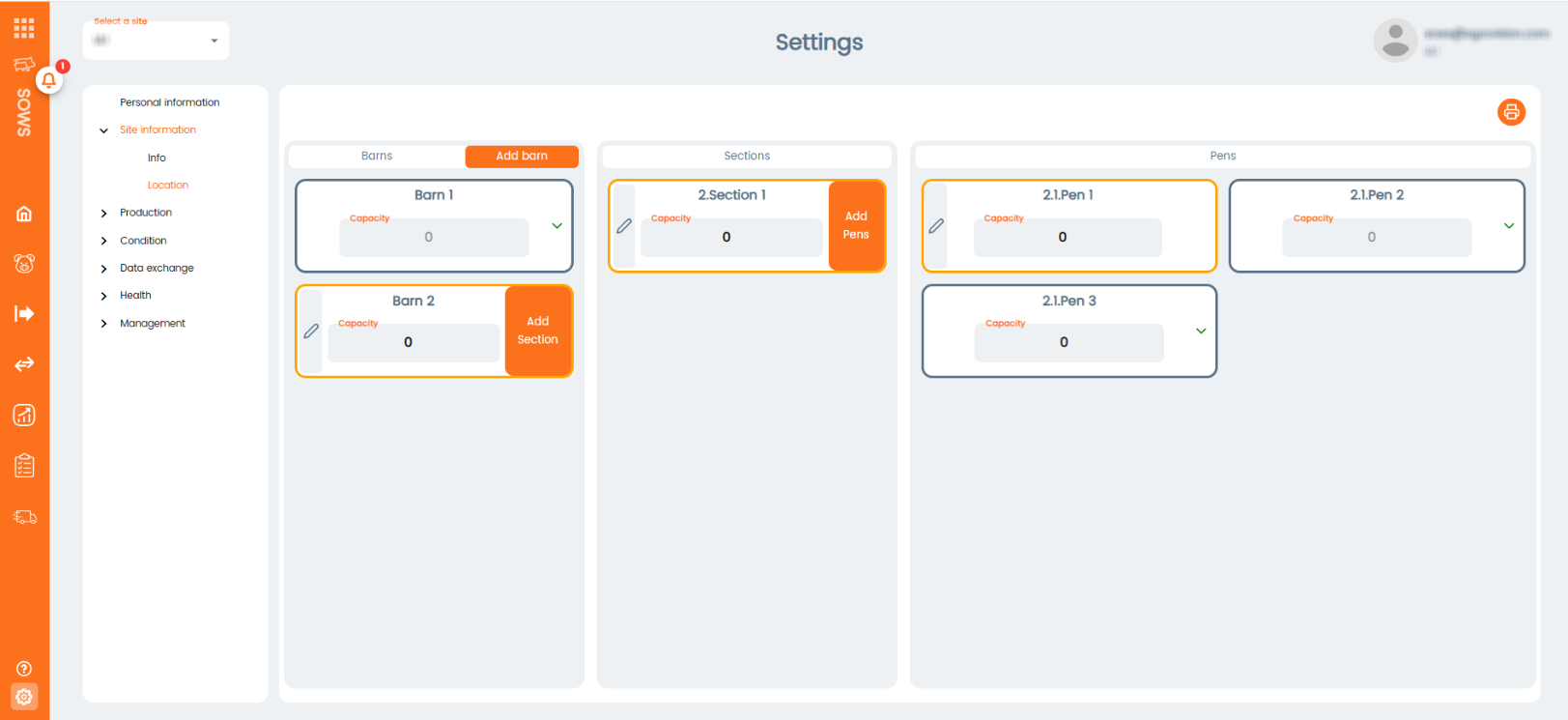 Once you have your barns set up, the next step is to create "Sections" within each barn. Sections allow you to further organize your barns into specific areas. To add a section, click the "Add section" button within the desired barn.