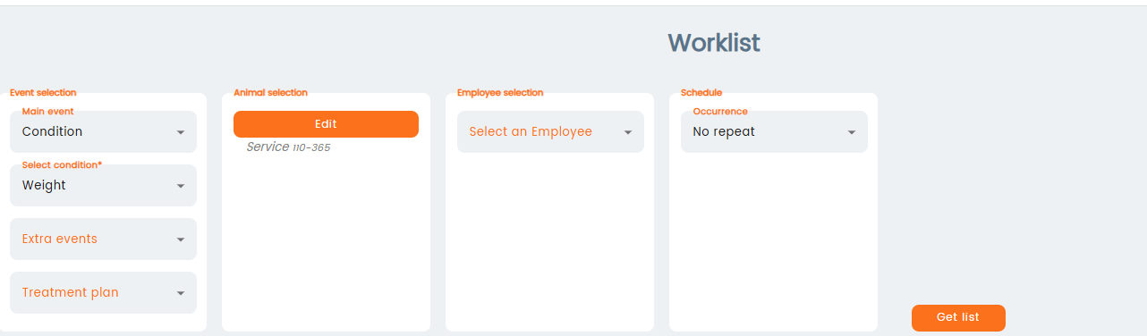 Under Animal selection, click Edit and select the animals you want to appear on the list. You may also select an Employee.