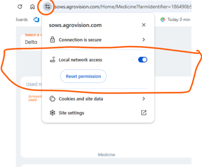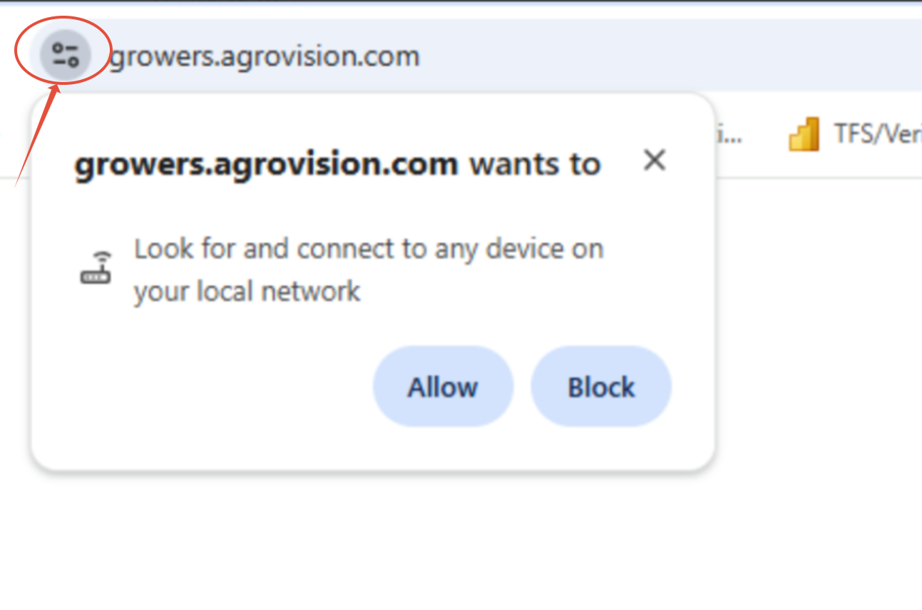 If you are trying to start AgroVision Growers but all you see is a white screen please go next to the URL bar to the site information icon and click on it.