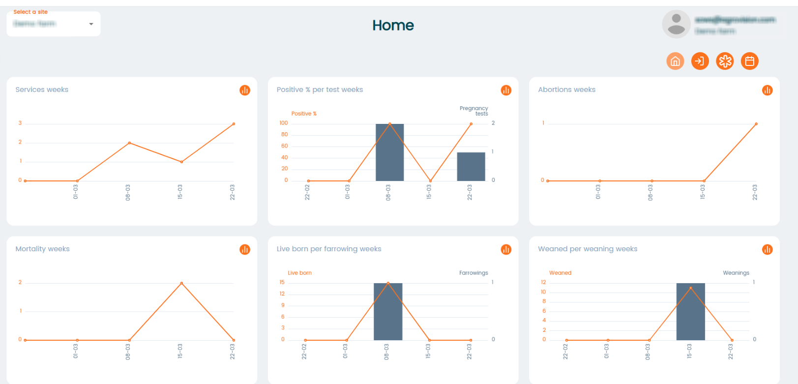 The dashboard presents essential key figures over time in a graphical format, allowing you to quickly assess the status of your farm.