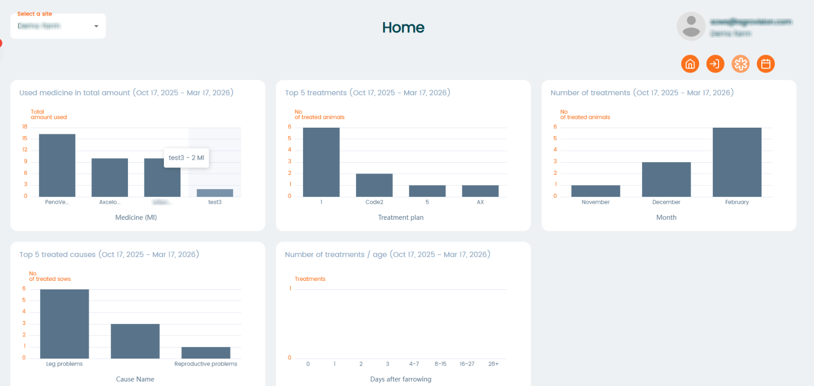 These graphs provide an overview of medicine usage on your farm: