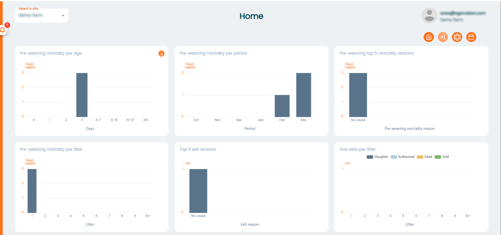 - "Pre-weaning top 5 mortality reasons" - shows the 5 most common death rreasons of piglets before weaning.