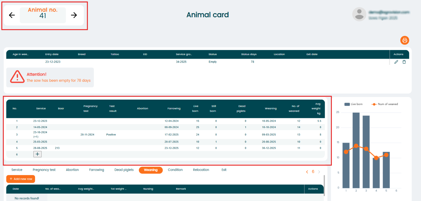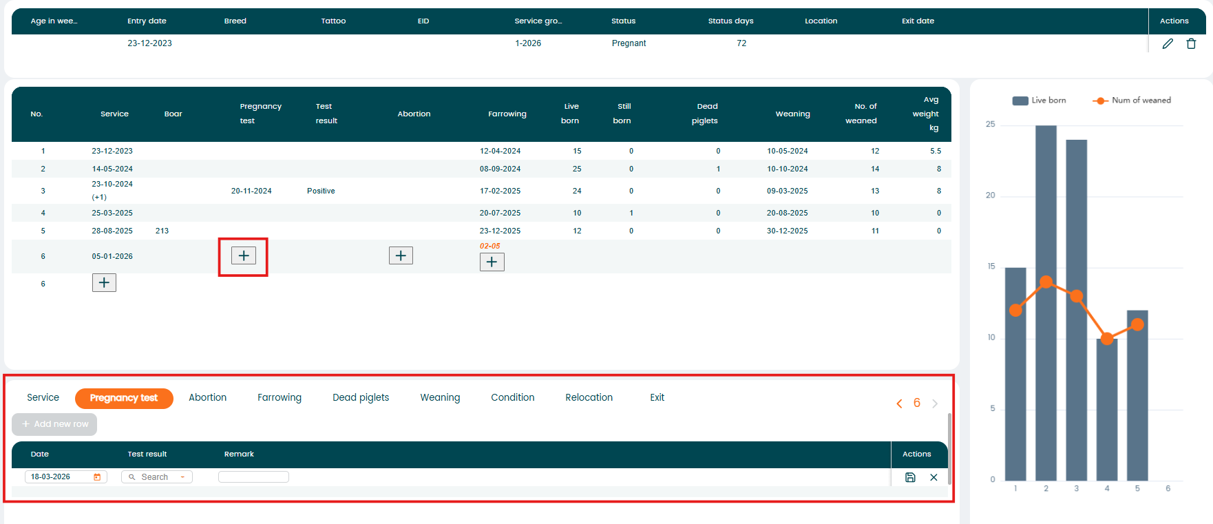 - Graphical view of live born and weaned piglets