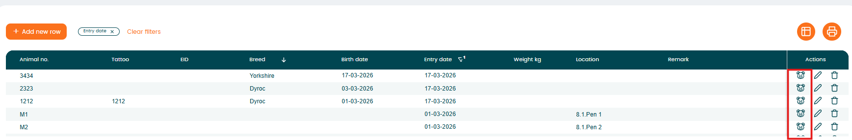 Click the pig icon in the "Action" column