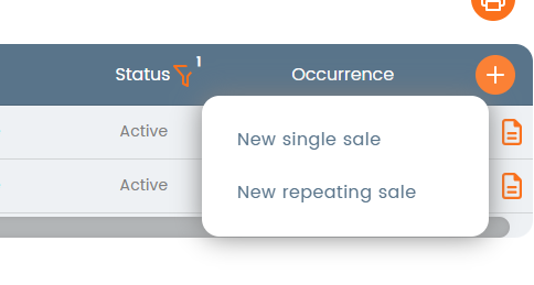 When creating a new sale, you can choose between a single sale or a repeating sale. Options will appear when you click on "+":