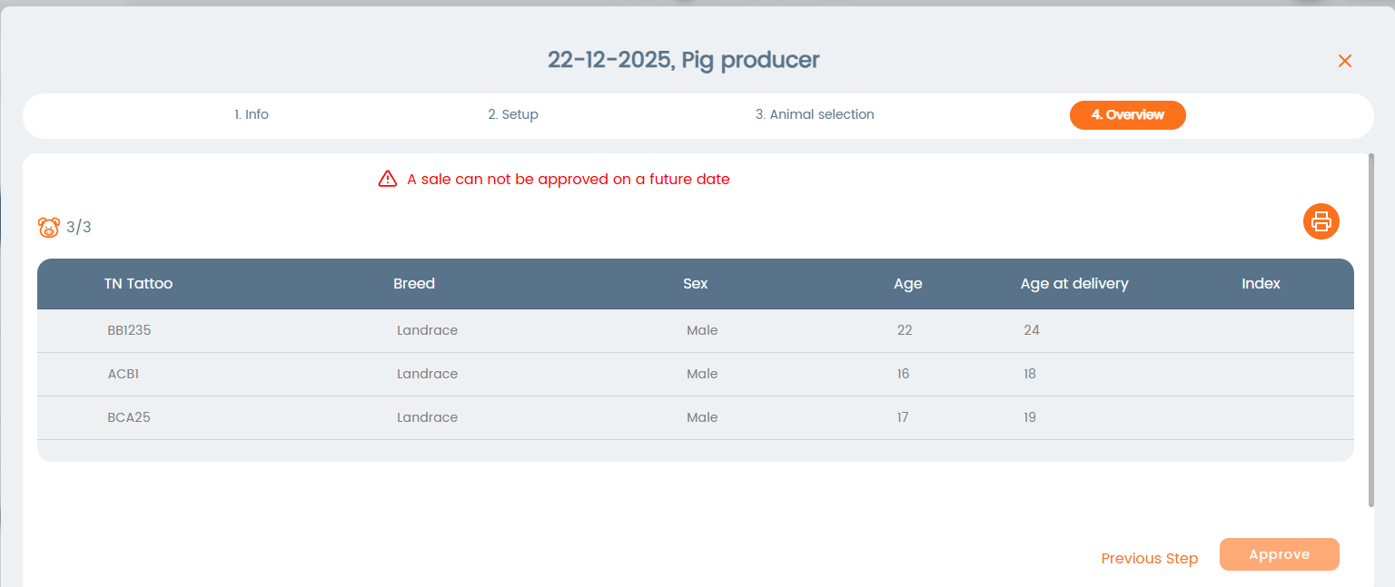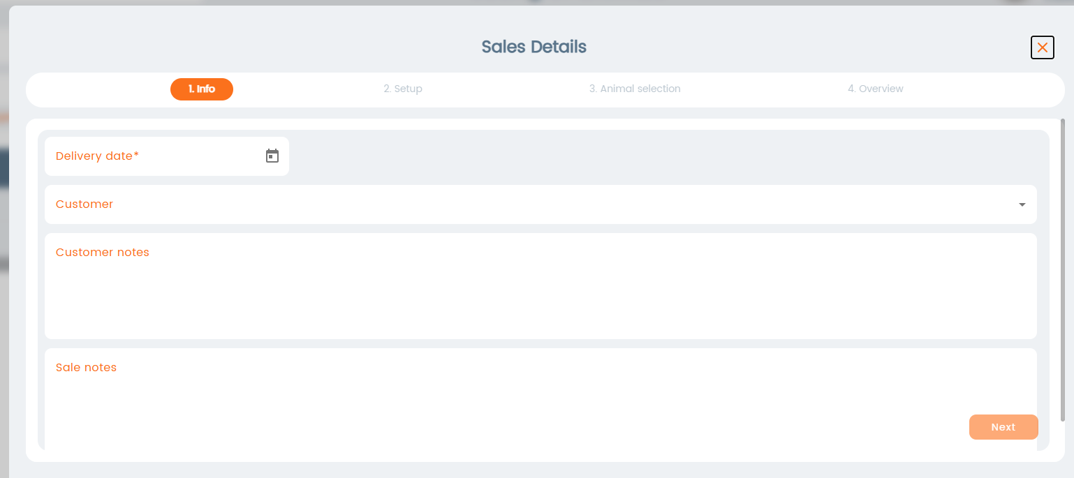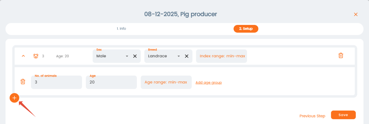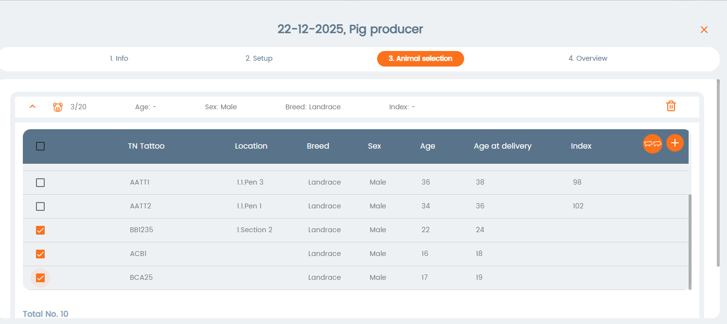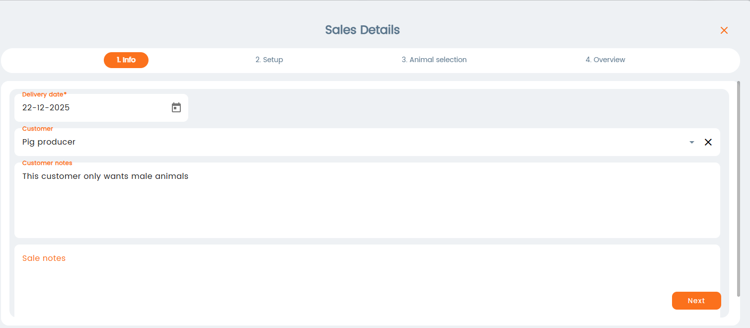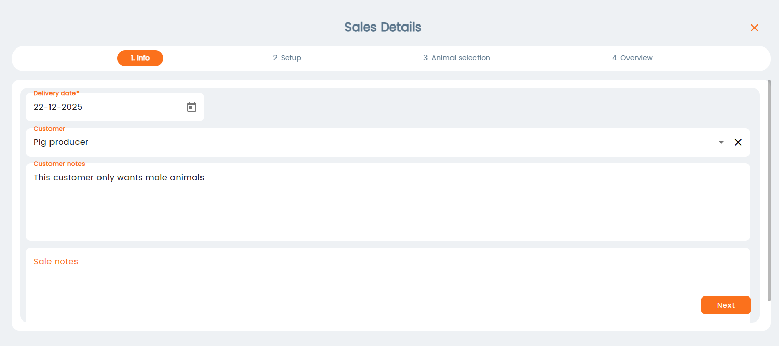 In the next step you can set the criteria for the sale, such as number of animals, breed, age, etc