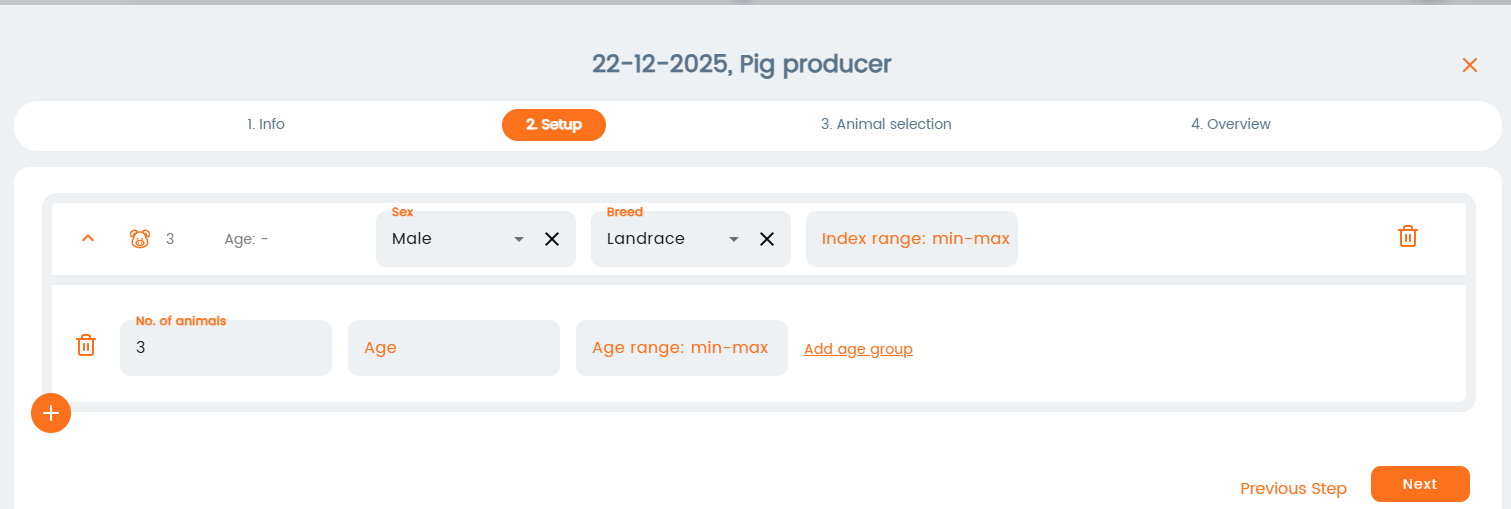 In the next step, you can setup up the criteria for selecting animals, such as breed, age range, sex, etc.