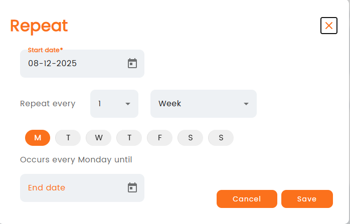 When selecting repeating sale, a new window will pop up asking to enter the reoccurrence: