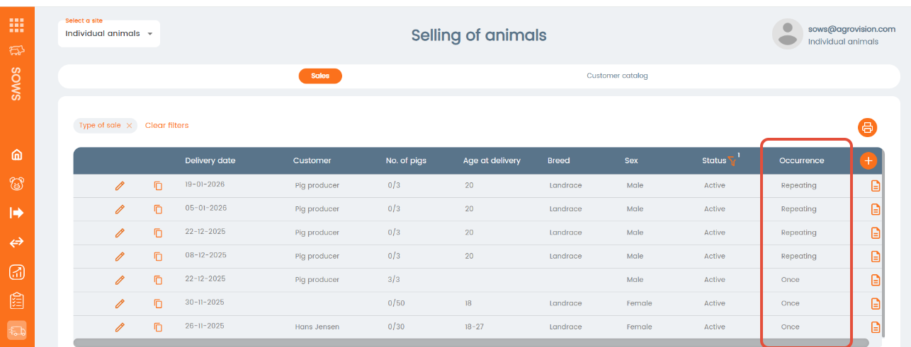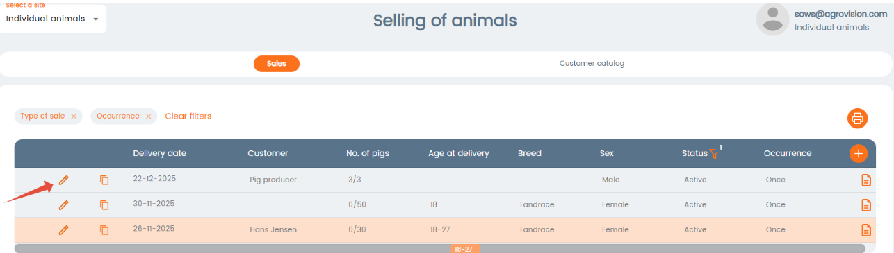 To sell your breeding stock, you can use the menu Selling of animals. In this menu you will create your sales, create a customer catalogue and the transaction details of your breeding animals.