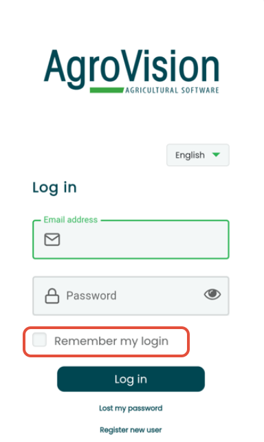 After download, open the app and you will see the login screen. Here, press "Log in" and a new browser will open, where you enter your My.AgroVision credentials with e-mail address and password.
