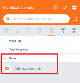 To create a new sale in AgroVision Sows mobile app you select "Sales" on the homescreen and click "Add new single sale".