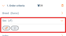 You can only select one breed and one sex per order criteria, so if you need to add different breeds or sex you must add a new order criteria.