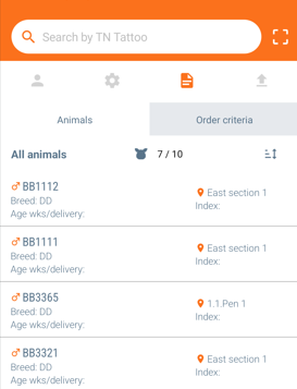 In the next step, the animals that match the selected criteria will be displayed: