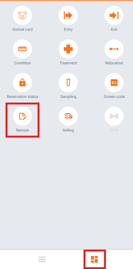 - On the "Home" screen, tap the navigation button on the bottom left of the screen and select "Remark".