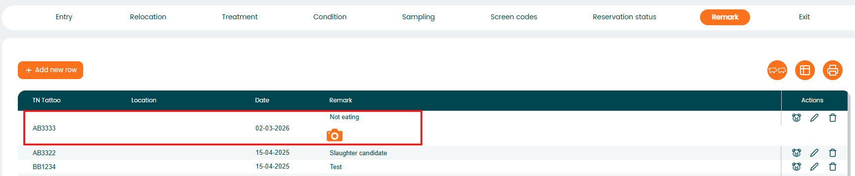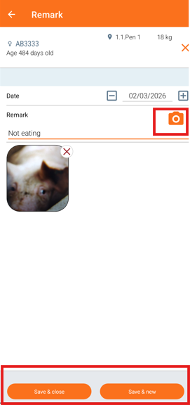 In the mobile app, you can add a remark to an animal and attach a picture.