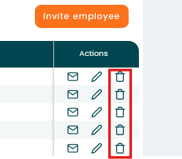 Select the employee you want to delete, then click the bin icon in the “Action” column.
