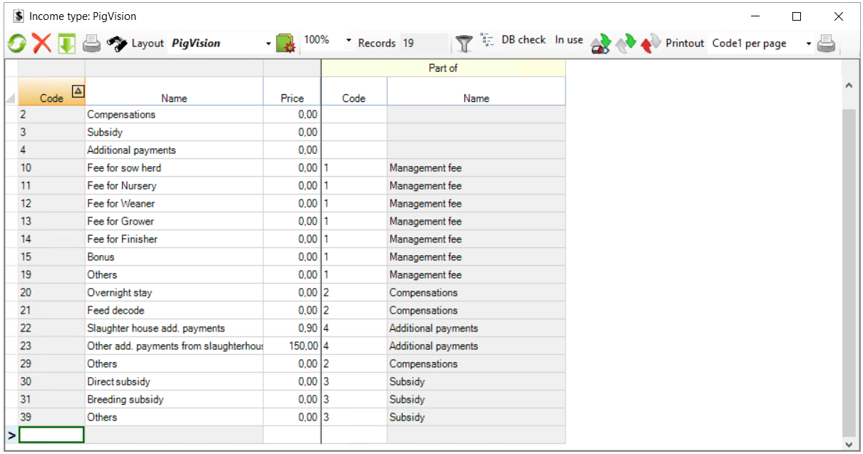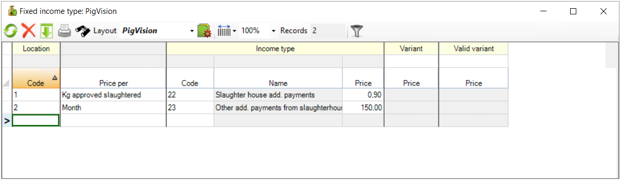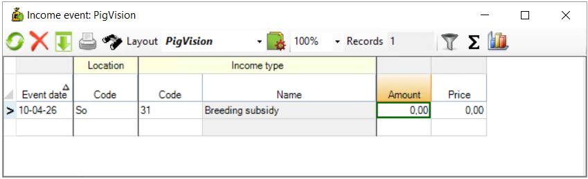 It is possible to enter various different income in PigVision that you have received in relation to your herd. The income will be used in the finance section in your E-control during the period corresponding to the date of the income.