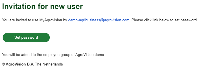 En el caso siguiente, el usuario ya tiene una cuenta MyAgroVision y recibió un correo electrónico de notificación.