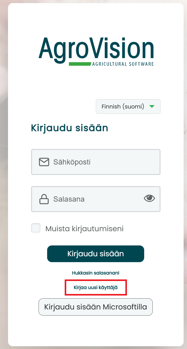 Ensimmäisellä kirjautumiskerralla sinun on rekisteröidyttävä "Uudeksi käyttäjäksi".