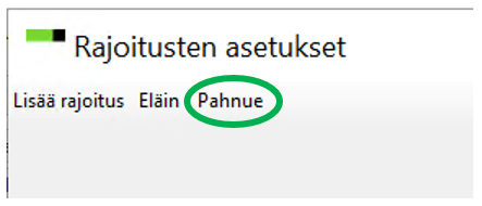 Napsauta Muokkaa heti Rajoitukset-ruudun alapuolella, jos haluat rajoittaa analyysin esimerkiksi laskemaan vain tietylle pahnue nro:lle.