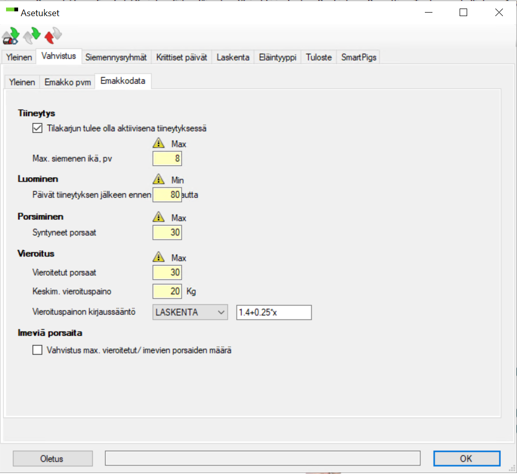 Jos työskentelet tilan sisäisen tuotannonhallinnan kanssa, ohjelma kysyy, onko emakoiden tarkoitus olla osa jalostusryhmää.
