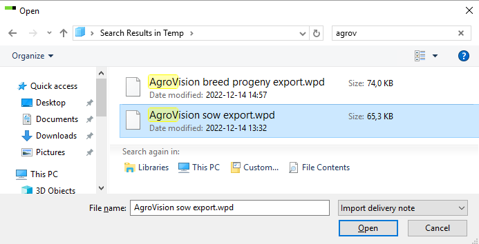 Napsauta Avaa ja saat nyt muutaman kysymyksen emakoiden tuonnista: