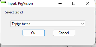 Topigs Norsvin -rodun jälkeläisten tuonnin yhteydessä on varmistettava, että eläimet on yhdistetty Topigs Norsvin -karjaryhmään. Jos tuot jälkeläisiä TXT-tiedostosta, valitse "Topigs tattoo" "Tag id" -ikkunassa.